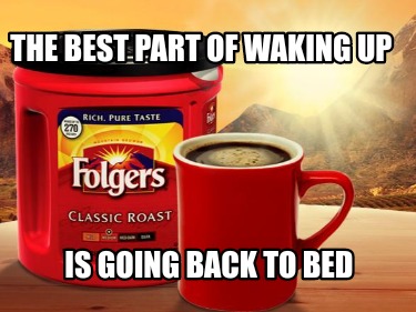 Oct 3 2012 - Discover the magic of the internet. The best part of waking up is my dick in your butt - folgers Meme Generator. The jingle was written by 80s one-hit wonder Leslie Pearl.