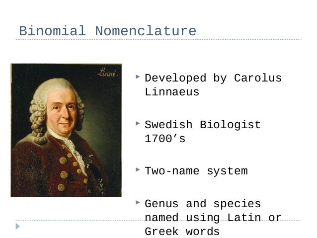 Taxonomists are also concerned with classification including its principles procedures and rules. Carl Linnaeus was a Swedish scientist who lived in the 18th century. The system of Binomial nomenclature was developed by Linnaeus Philosophia Botanica 1751.