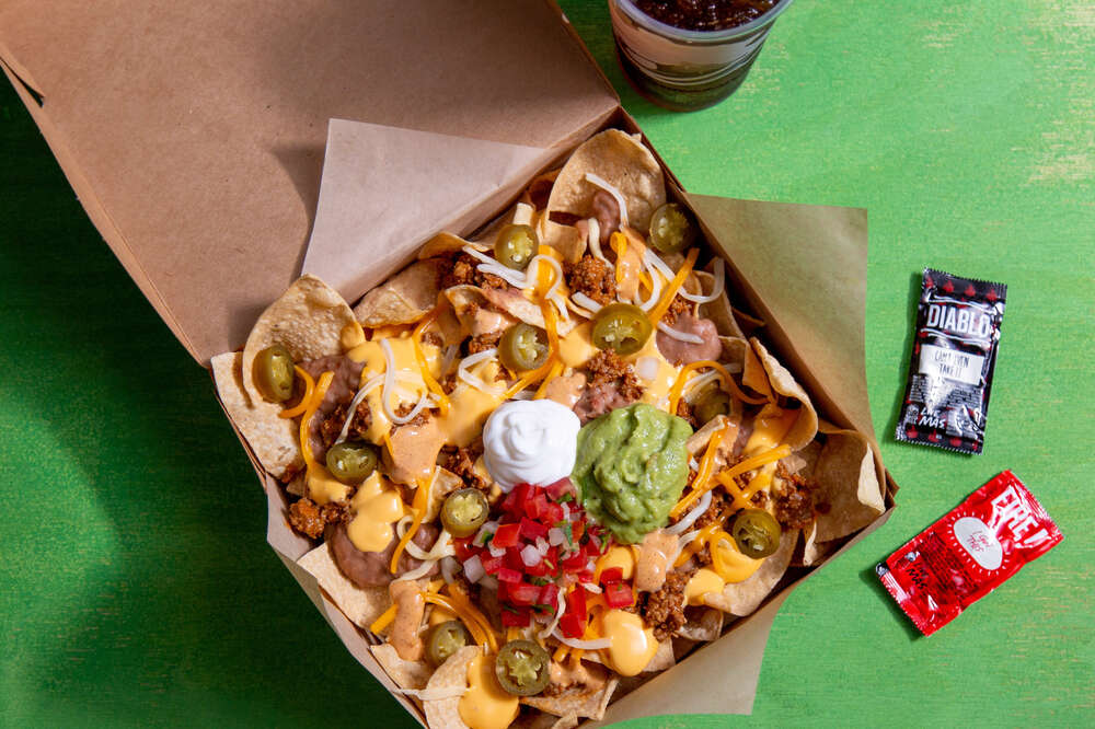 Stop by your nearby Taco Bell location at 3436 Research Parkway Blvd Colorado Springs CO to find Nachos near you. Two beef crunchy tacos two regular seasoned fries two canned beverages grilled chicken quesadilla and a nachos supreme to split. Taco Bell Rewards program subject to Terms and Conditions.